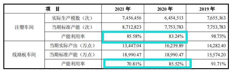本项目总投资4.17亿元,其中3.743亿元用于资本性投资,包括厂房建设、设备购置及安装等;4,269.43万元用于铺底流动资金。2020年,注塑车间产能利用率下降,主要系由于受疫情以及公司厂房搬迁等因素影响,公司注塑车间实际工作时间较2019年减少约2个月;2021年8月,注塑车间购置3台阿博格注塑机,使得注塑车间2021年标准产能较2020年有所上升。