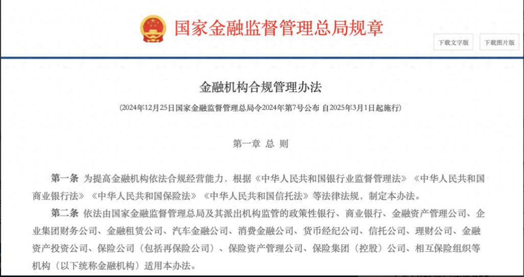 《金融机构合规管理办法》自2025年3月1日起施行。图片来源:金融监管总局官网